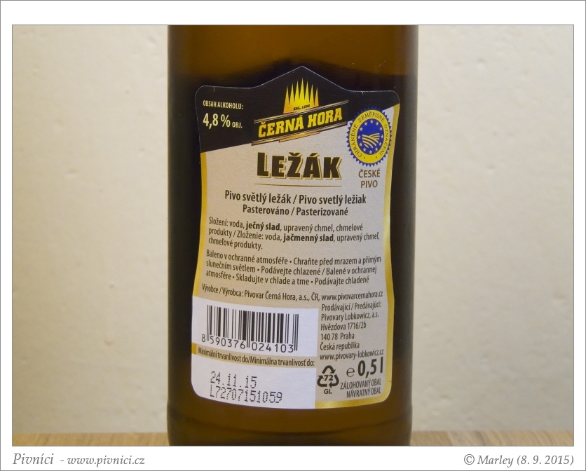 Celkem slušně pitelný ležák.Minimální trvanlivost: 24. listopadu 2015