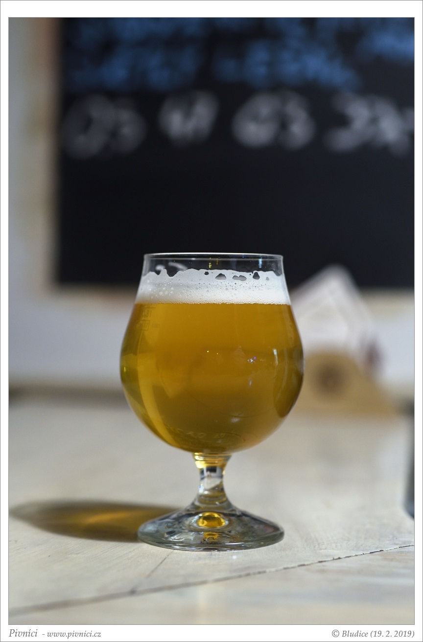 Zlatá barva, čiré. Pěkná světlá pěna, slušně drží.Vůně (3,5 - velmi dobré):