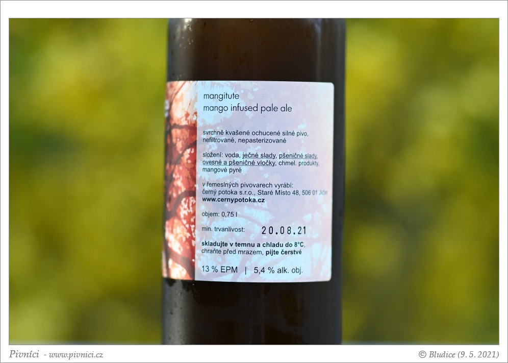 Zlatá barva, velmi zakalené. Nižší světlá pěna s většími oky, moc nedrží (zřejmě kvůli ovoci).Vůně (3,5 - velmi dobré):