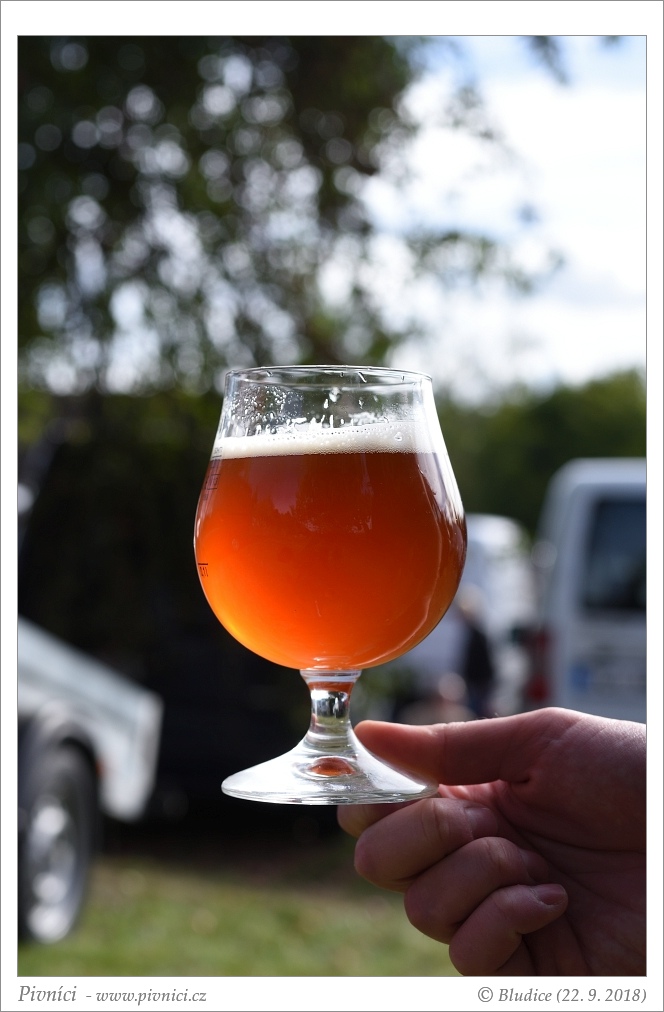 Tmavší měděná barva s rubínovým nádechem, téměř čiré. Pěkná světlá pěna, celkem drží.Vůně (2,5 - lehce nadprůměr):