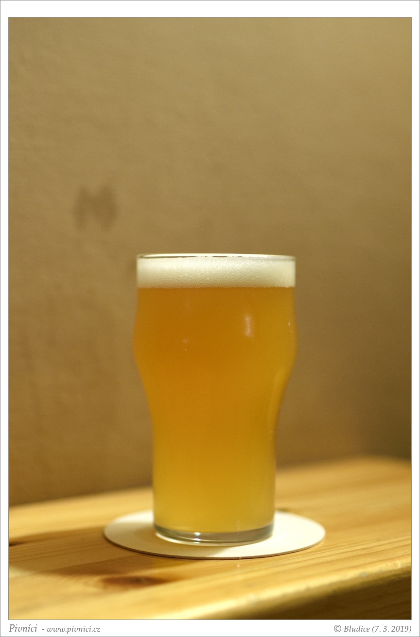 Zlatá barva, čiré. Pěkná světlá pěna, dobře drží.Vůně (3,5 - velmi dobré):