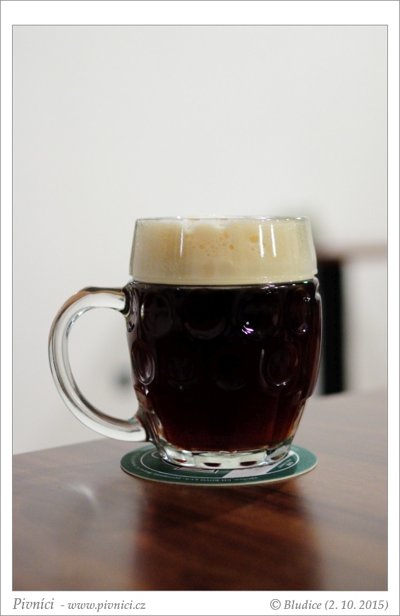 Tmavě mahagonová barva, téměř čiré, pěkná světlá pěna, dobře drží.Vůně (2,5 - lehce nadprůměr):