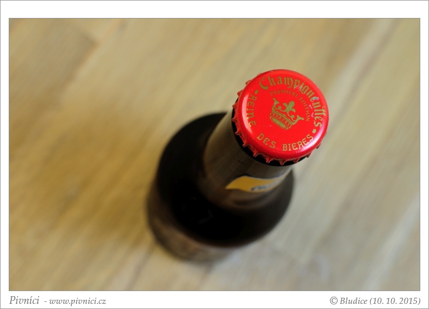 Tmavší zlatá barva, čiré, pěkná světlá pěna, dobře drží.Vůně (2,5 - lehce nadprůměr):