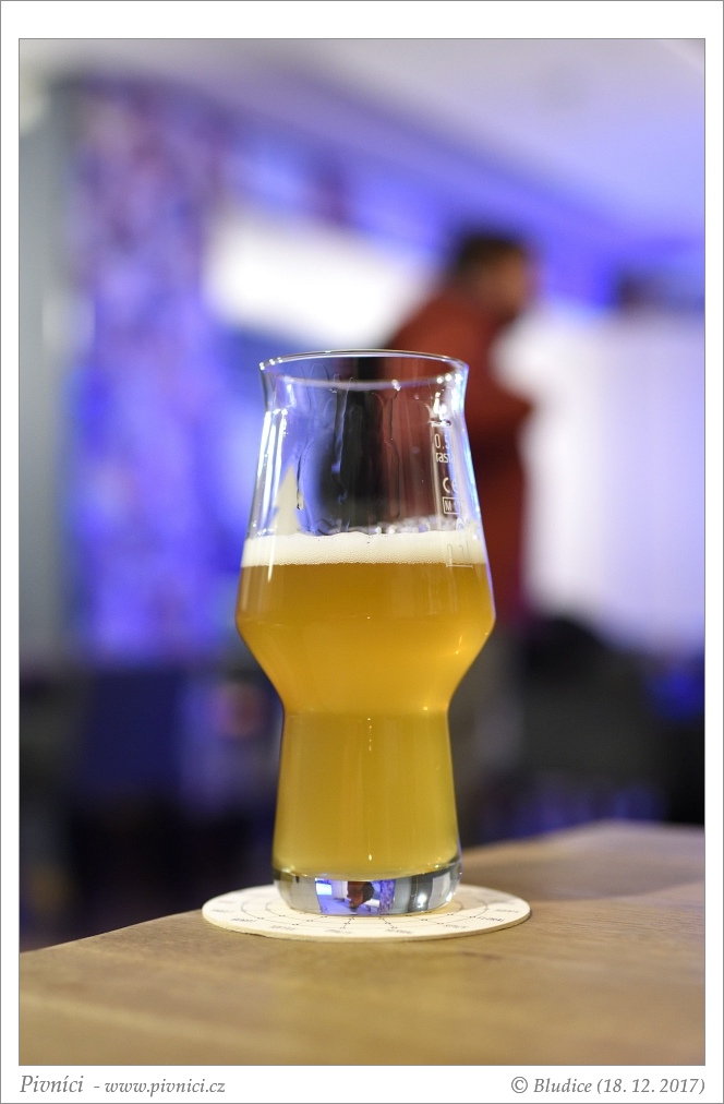 Zlatá barva, lehce zakalené, pěkná světlá pěna, dobře drží.Vůně (4 - výborné):
