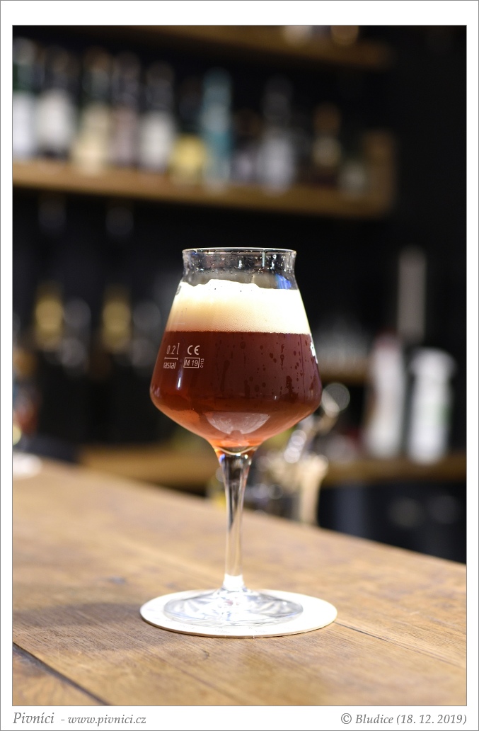 Tmavě měděná barva s rubínovým nádechem, téměř čiré. Pěkná světlá pěna s okrovým nádechem, dobře drží.Vůně (3 - dobré):