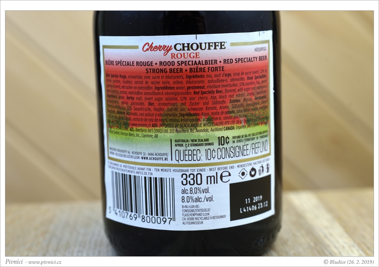 Chutné višňové pivo, dobře se popíjí.Minimální trvanlivost: 30. listopadu 2019