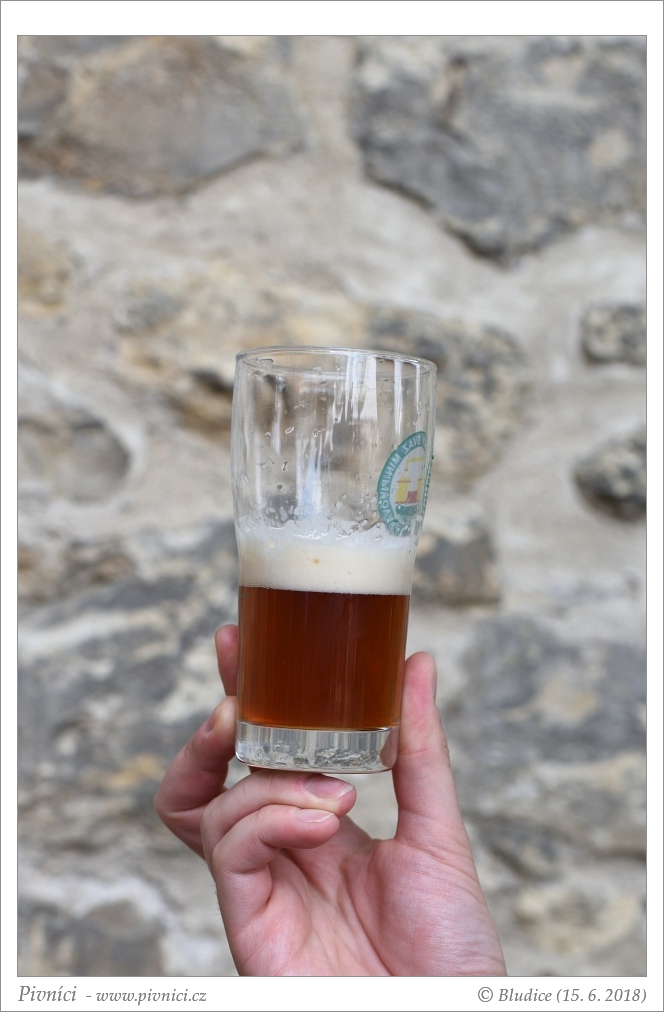 Měděná barva, lehce zakalené. Pěkná světlá pěna, dobře drží.Vůně (1 - hnusné):