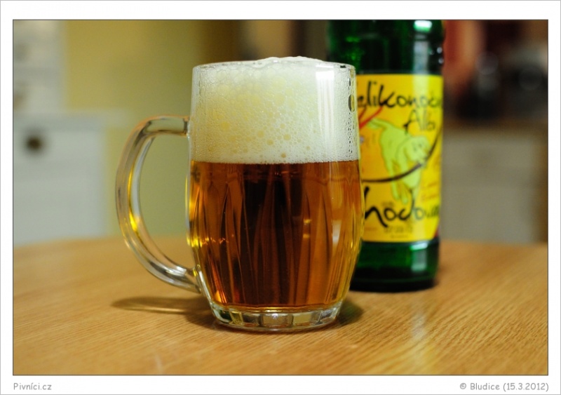 Zlatá, velice pěenivé, pěna bílá, řídká.Vůně (2 - průměr):