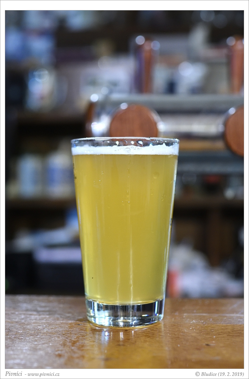 Světle zlatá barva, lehce až středně zakalené. Nižší světlá pěna, celkem drží.Vůně (3,5 - velmi dobré):
