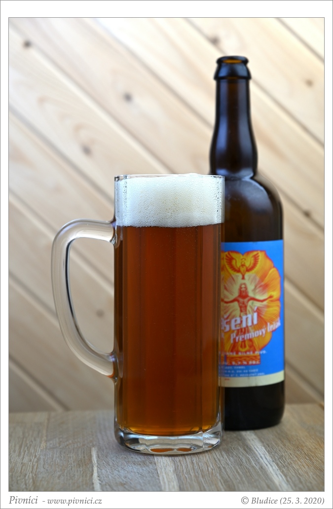 Barva světle měděná, lehce zakalené. Pěkná hustá stabilní pěna.Vůně (2,5 - lehce nadprůměr):