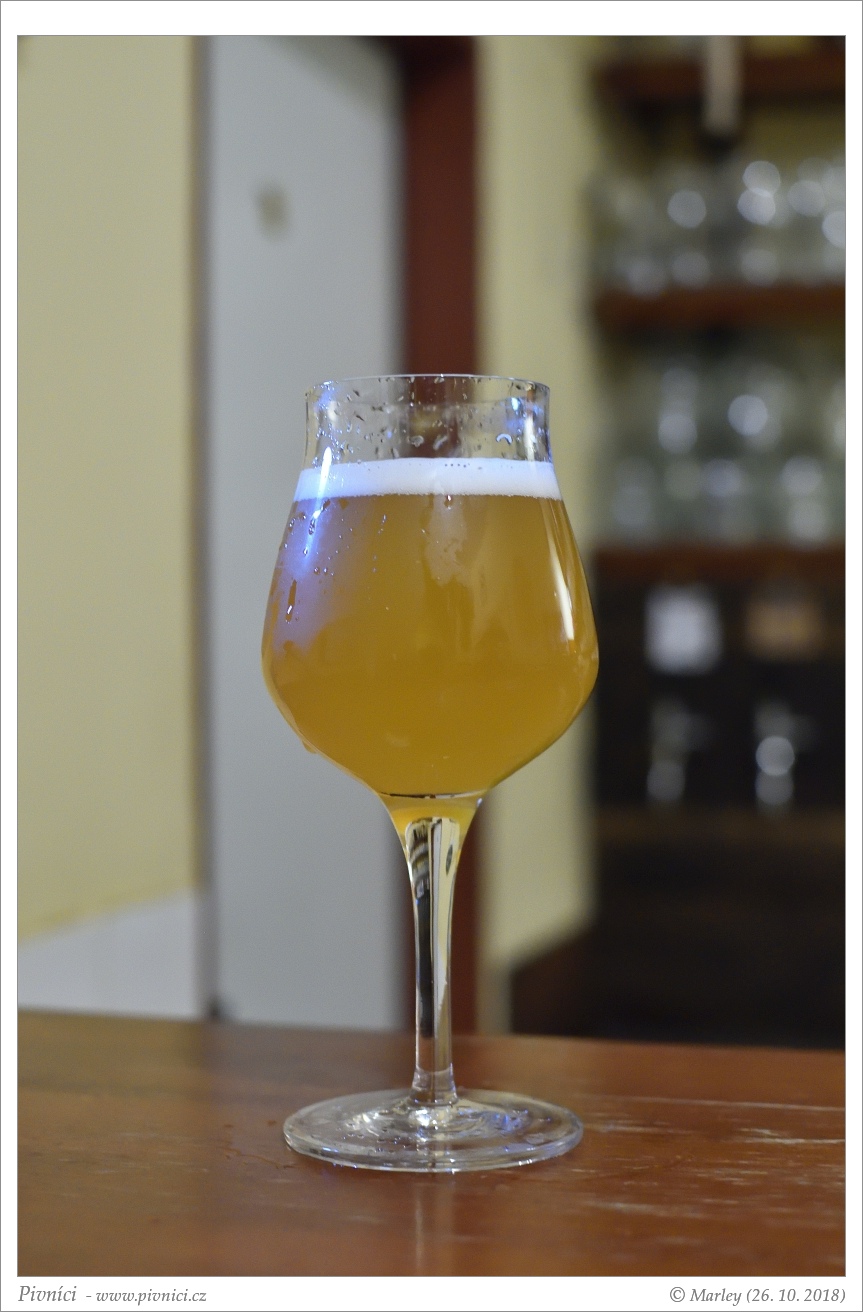 Zlatá barva, více zakalené. Pěkná světlá pěna, dobře drží.Vůně (3,5 - velmi dobré):