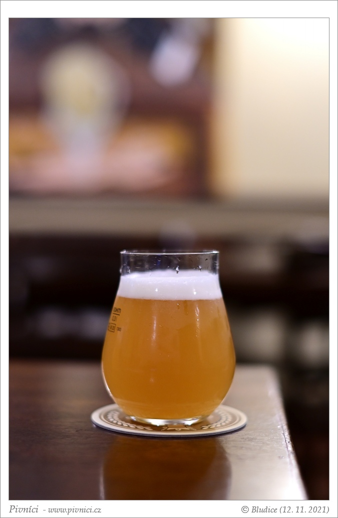 Zlatá až lehce oranžová barva, více zakalené. Slušná světlá pěna, celkem drží.Vůně (3 - dobré):