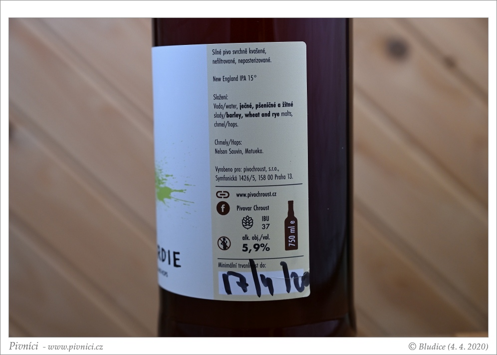 Zlatá barva, lehce až středně zakalené. Pěkná světlá pěna, dobře drží.Vůně (4 - výborné):