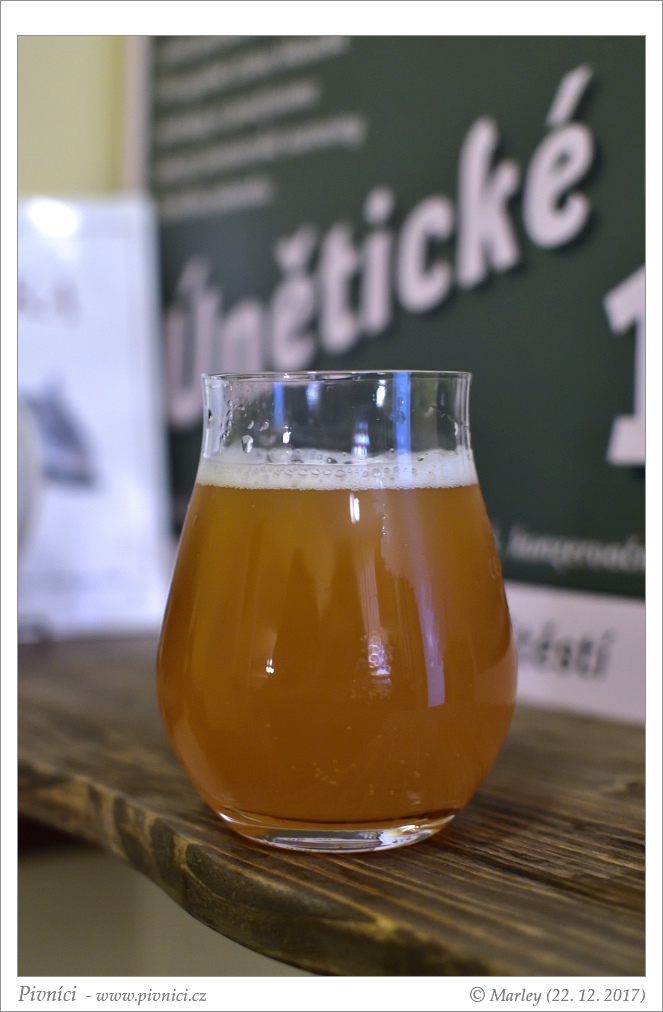 Zlatá až oranžová barva, velmi zakalené, nízká světlá pěna, moc nedrží.Vůně (4 - výborné):