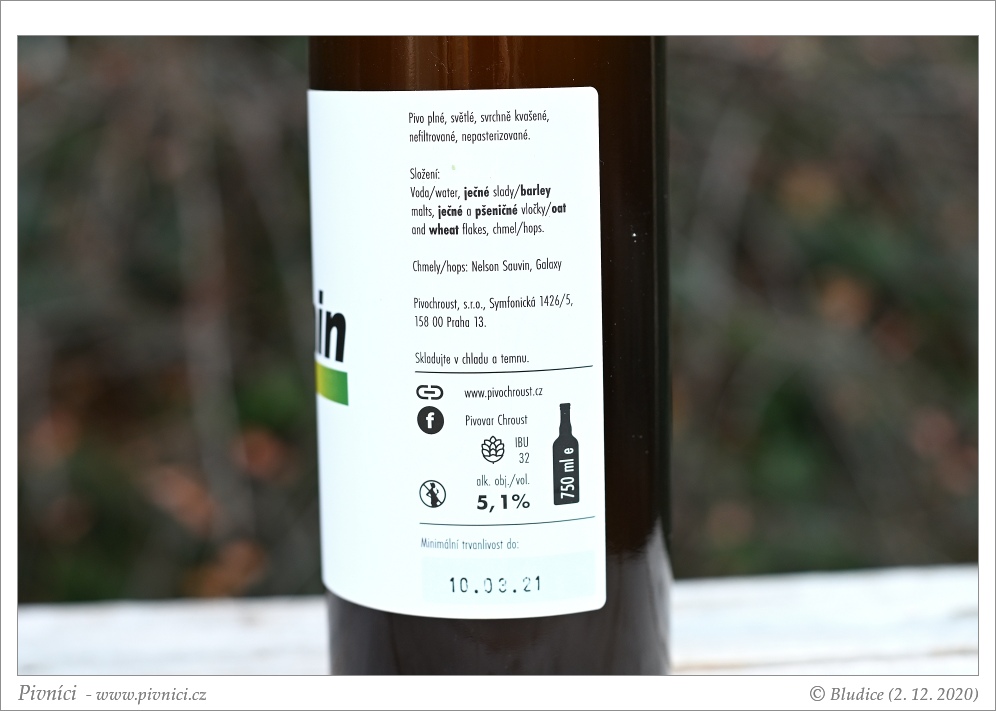 Světle zlatá barva, středně zakalené. Pěkná světlá pěna, dobře drží.Vůně (3,5 - velmi dobré):
