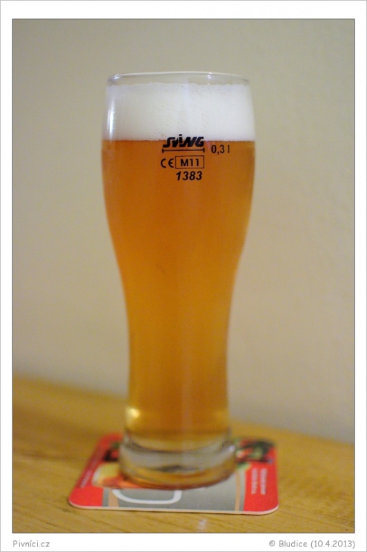 Barva slámová, zakalené. Pěkná hustá stabilní pěna.Vůně (1,5 - nedobré):