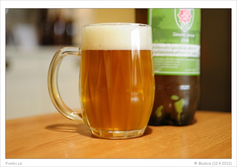 Zlatá barva, lehce zakalené, pěkná světlá pěna, slušně drží.Vůně (2,5 - lehce nadprůměr):