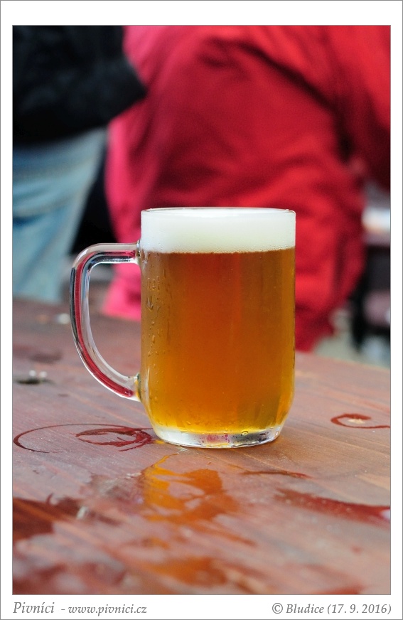 Zlatá barva, lehce zakalené, pěkná světlá pěna, dobře drží, slušně kroužkuje.Vůně (2,5 - lehce nadprůměr):
