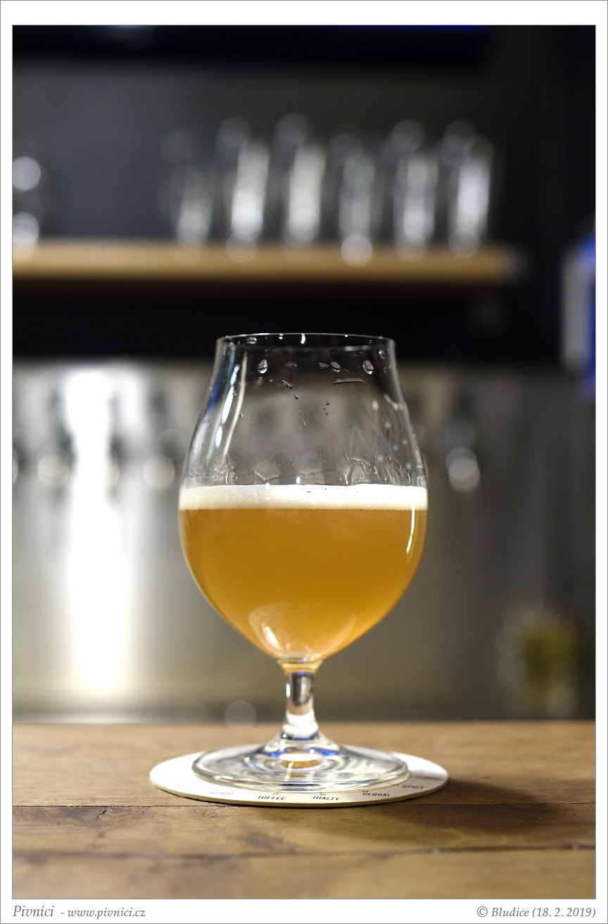 Zlatá barva, středně zakalené. Pěkná světlá pěna, celkem drží.Vůně (3 - dobré):