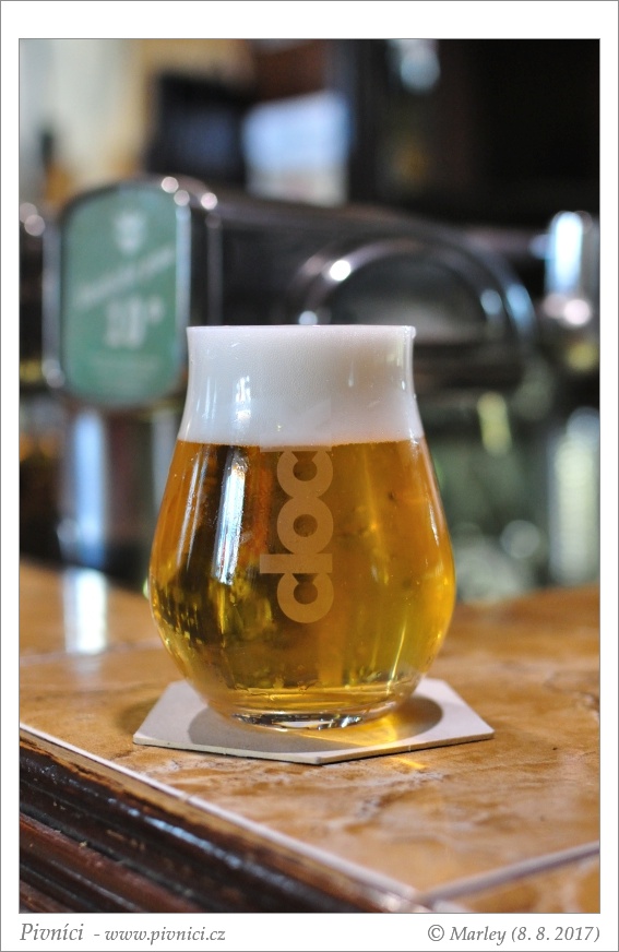 Zlatá barva, prakticky čiré, pěkná světlá pěna, dobře drží.Vůně (3,5 - velmi dobré):