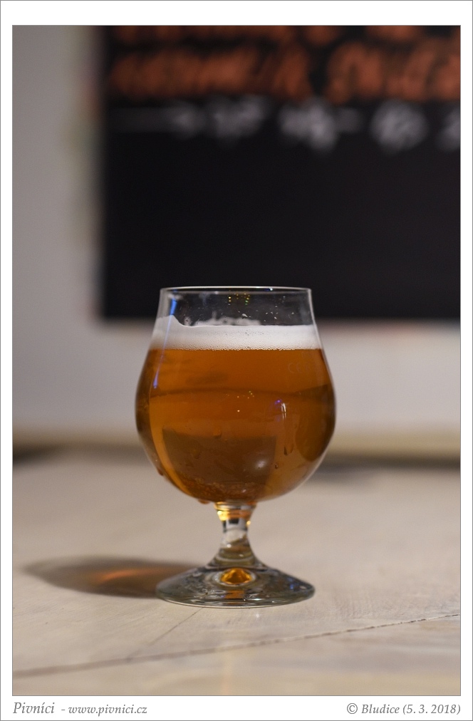 Zlatá barva, velmi lehce zakalené. Pěkná světlá pěna, dobře drží, hezky kroužkuje.Vůně (3 - dobré):