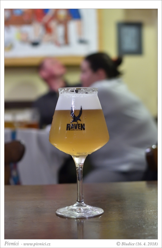 Zlatá barva, lehce zakalené. Pěkná světlá pěna, dobře drží.Vůně (3 - dobré):