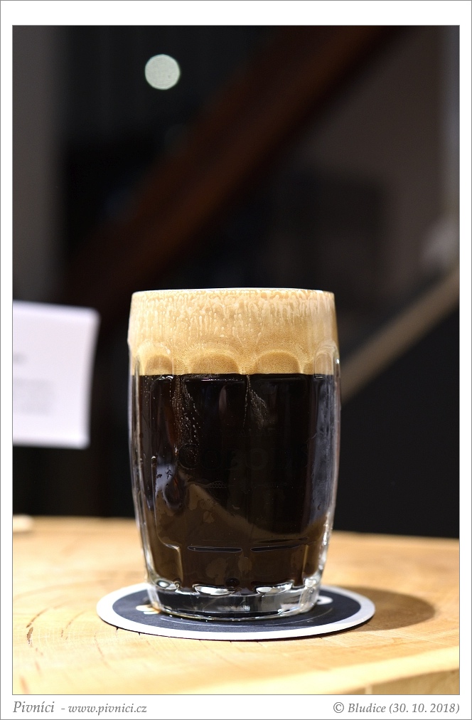 Barva velmi tmavě mahagonová. Pěkná hustá stabilní pěna světle béžové barvy. Kroužkuje.Vůně (3 - dobré):