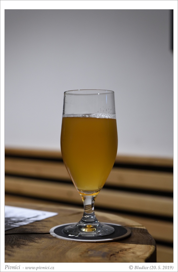 Zlatá barva, středně zakalené. Pěkná světlá pěna, dobře drží.Vůně (4 - výborné):