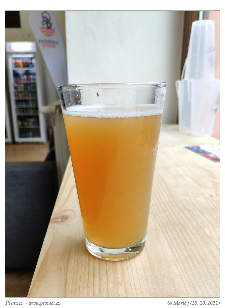 Zlatá barva, velmi zakalené. Pěkná světlá pěna, dobře drží.Vůně (4 - výborné):