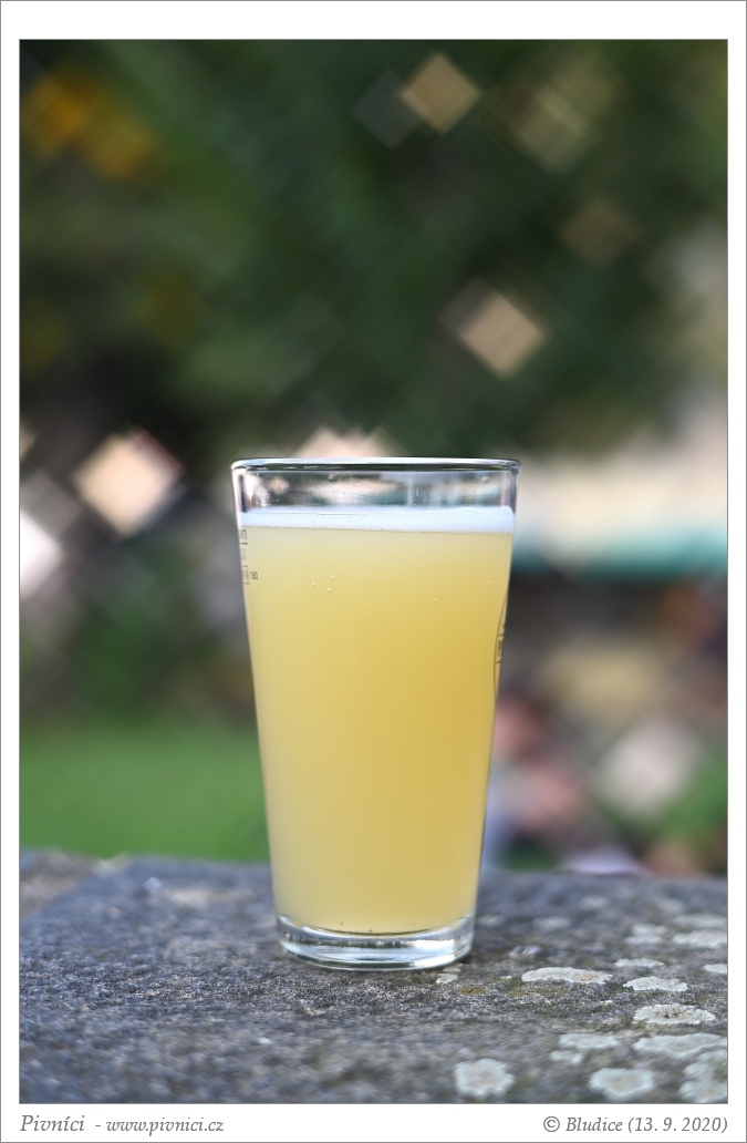 Slámová barva, velmi zakalené. Pěkná světlá pěna, slušně drží.Vůně (2,5 - lehce nadprůměr):