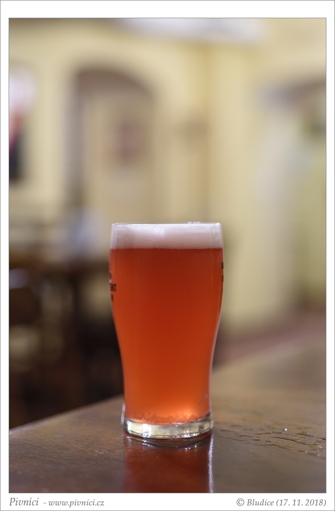 Oranžovo-červené barva, více zakalené. Pěkná světlá pěna, dobře drží, krásně kroužkuje.Vůně (3,5 - velmi dobré):