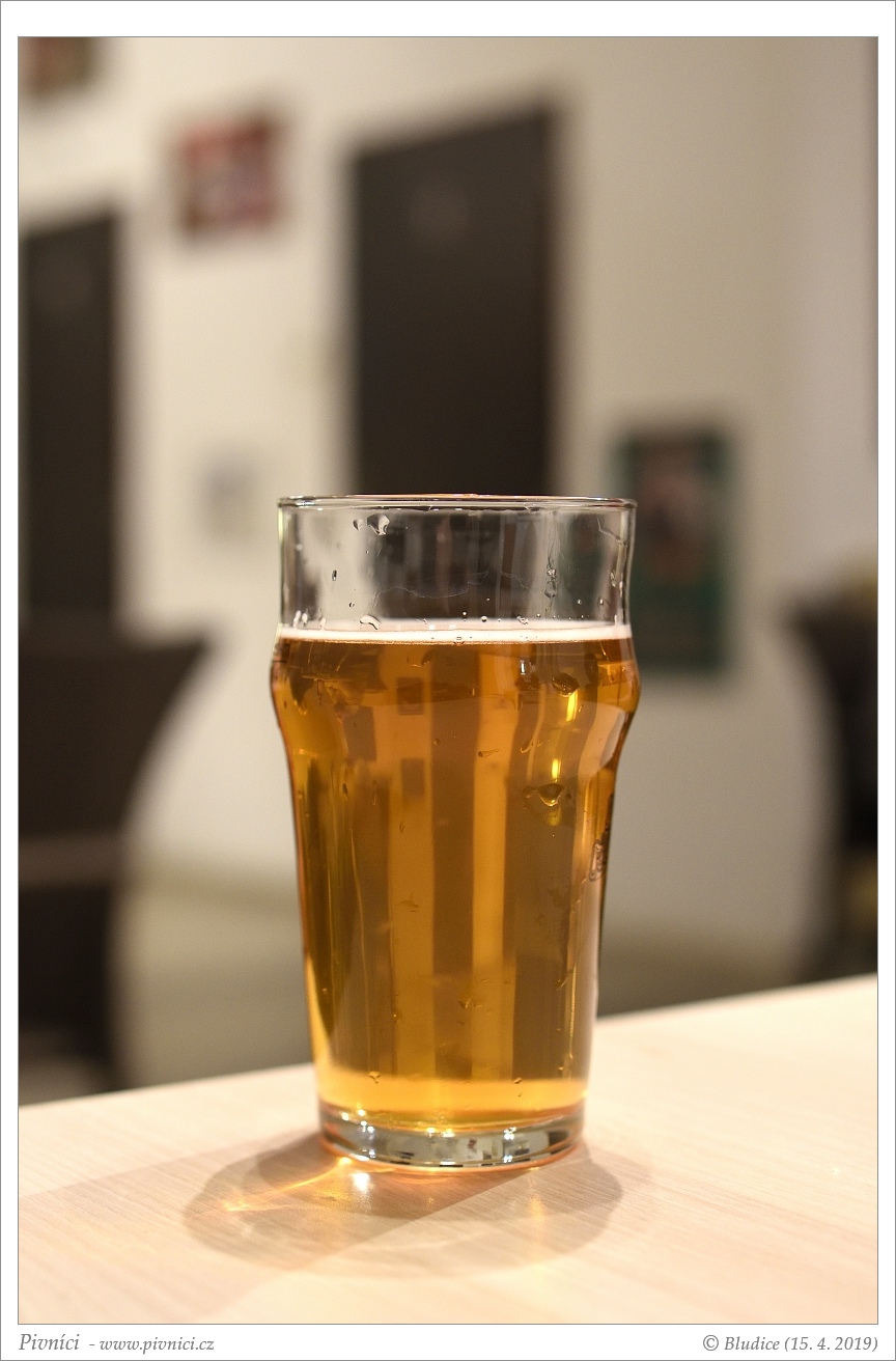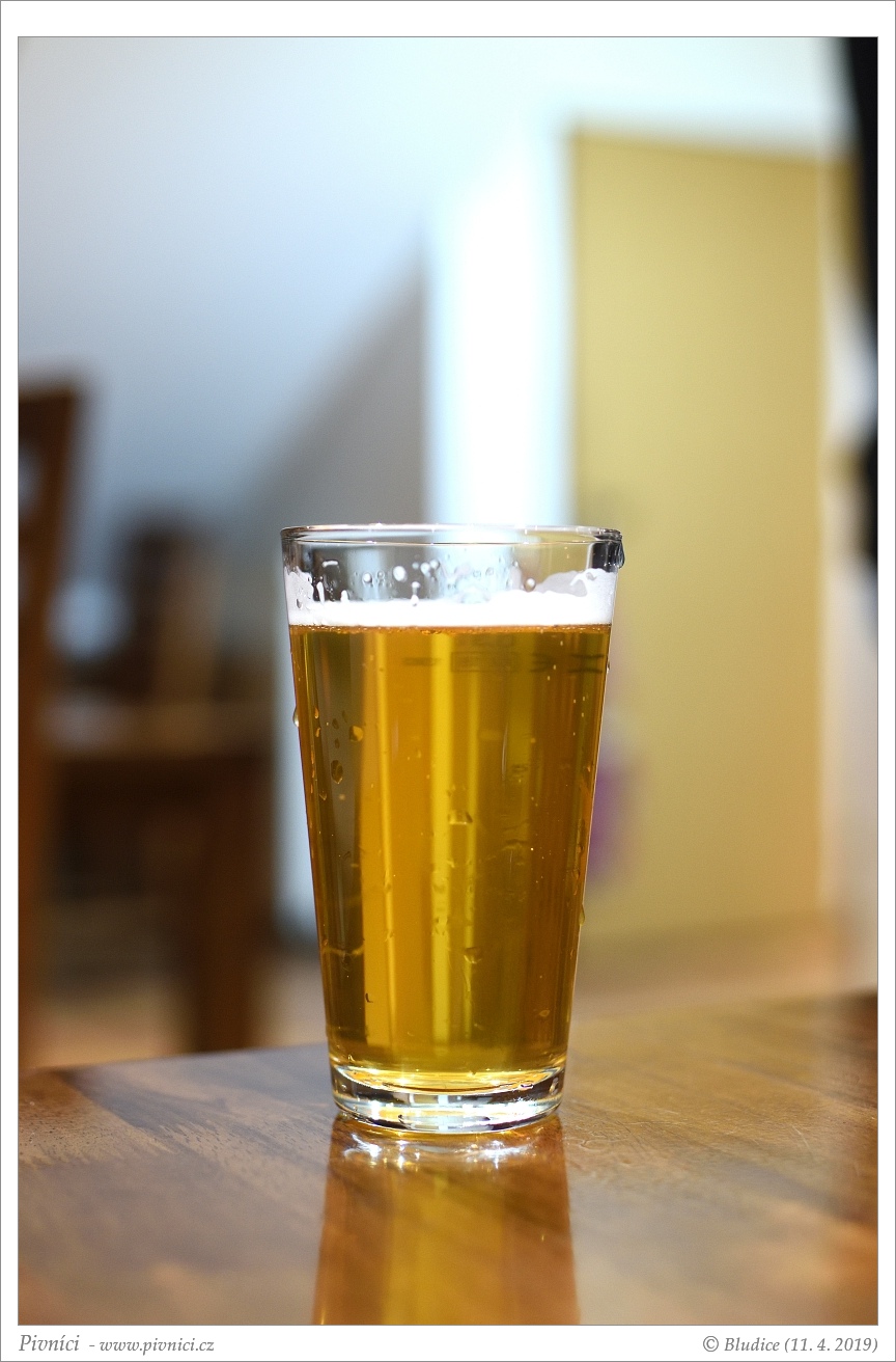 Zlatá barva, čiré. Slušná nižší světlá pěna, dobře drží.Vůně (3,5 - velmi dobré):