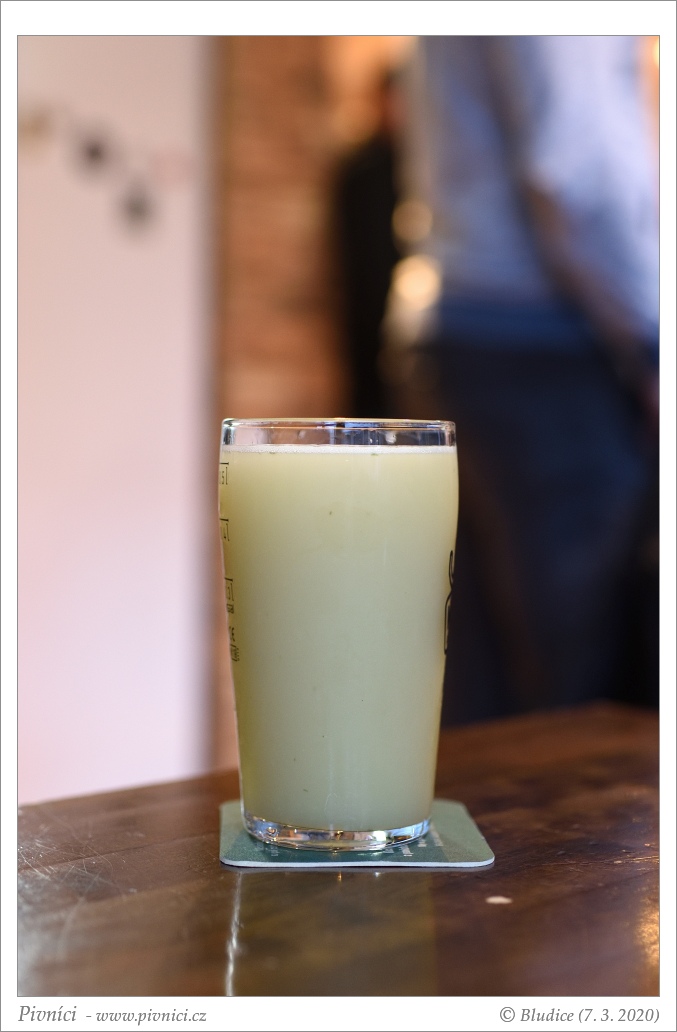 Barva okrová s nazelenalým nádechem, silně zakalené. Nižší méně stabilní pěna.Vůně (3 - dobré):