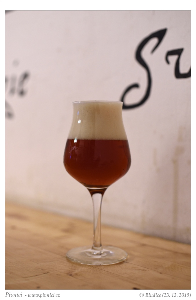 Tmavě měděná barva, čiré. Slušná světlá pěna, dobře drží.Vůně (3,5 - velmi dobré):