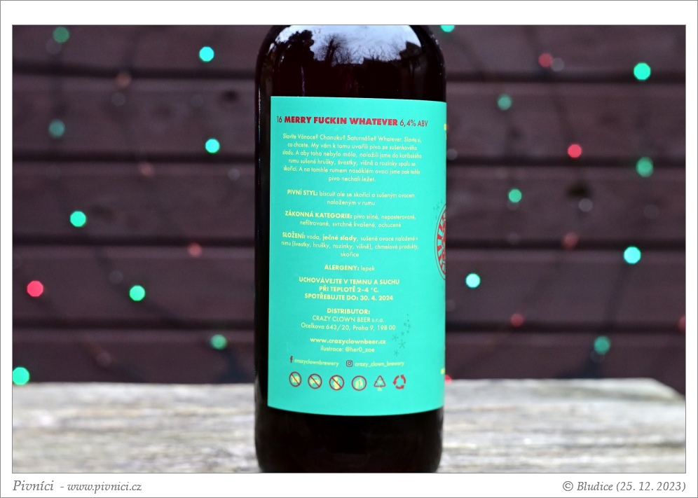 Chutné pivo s příjemnými jemnými tóny sušeného ovoce, není přeslazené, ani chuťově přepálené. Je vyvážené a výborně se popíjející.Minimální trvanlivost: 30. dubna 2024