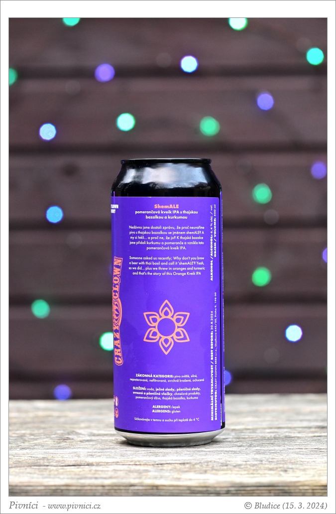 Zlatá až žlutý barva, více zakalené. Slušná světlá pěna, moc ale nedrží (kvůli těm všem přísadám zřejmě).Vůně (3 - dobré):