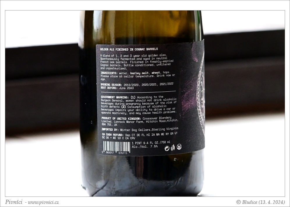 blend 1, 2 a 3letých spontánně kvašených piv, dozrávaný v sudech z francouzského dubu, následně v sudech po koňaku