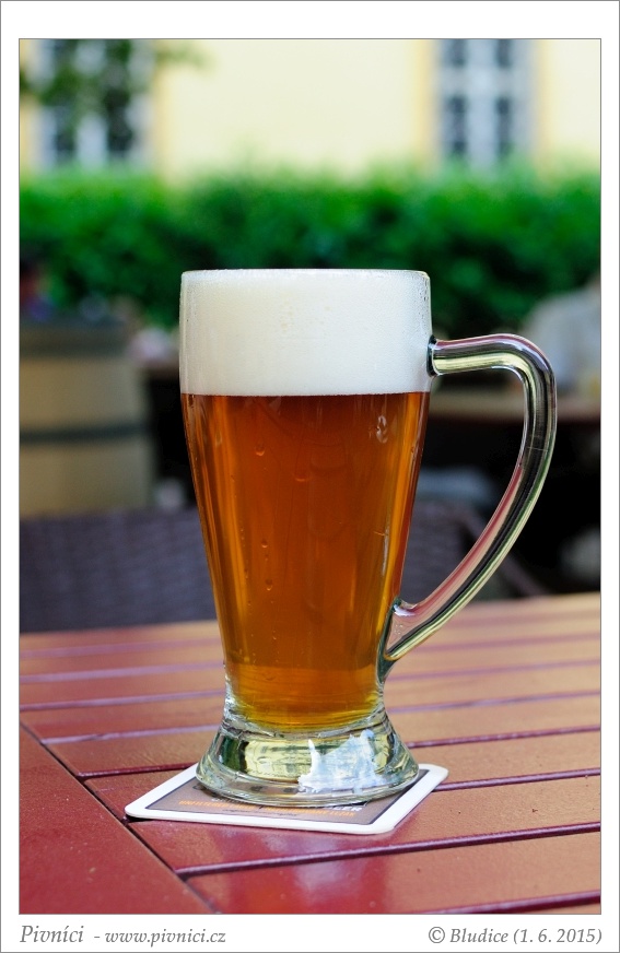 Tmavší zlatá barva, velmi lehce zakalené, pěkná světlá pěna, slušně drží.Vůně (3,5 - velmi dobré):