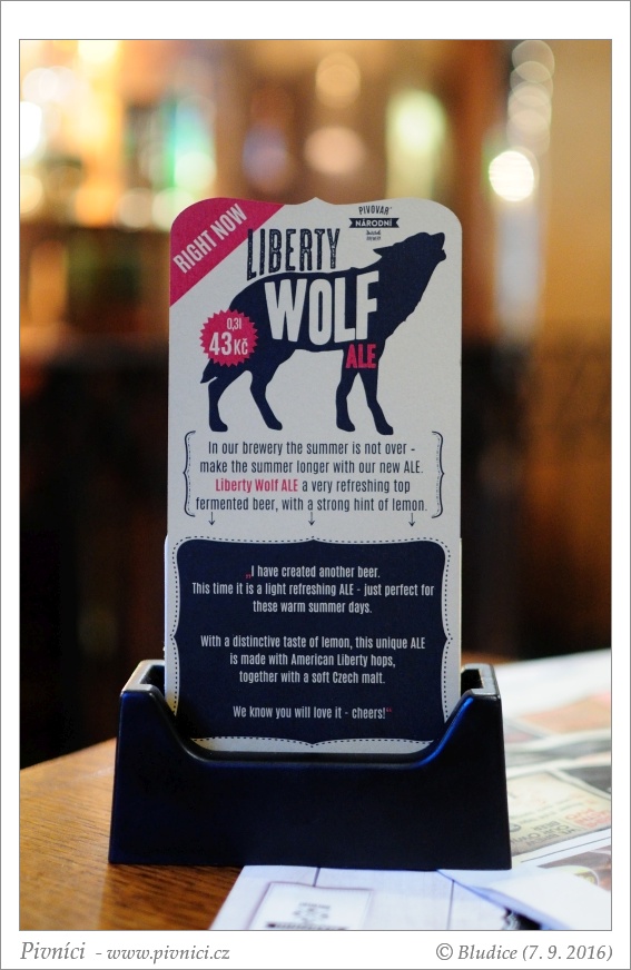 … Už je ale vypita a na čepu ji vystřídal Liberty Wolf Ale, tedy ejl s americkým chmelem Liberty. Není příliš výrazně …