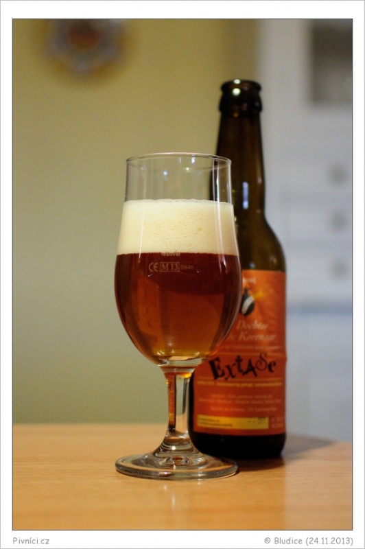 Tmavší zlatá barva, čiré, hezká světlá pěna s okrovým nádechem, dobře drží.Vůně (4 - výborné):