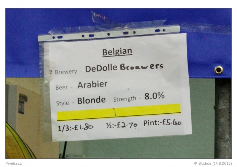 Takové pivo Duvelovského typu, drsnější, výraznější. Povedené a skvěle pitelné.Cena 1,80 £ za 1/3 pinty