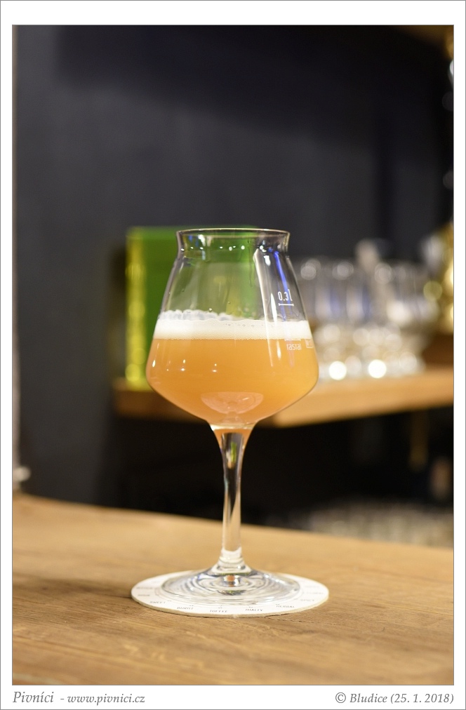 Barva zlatá, silně zakalené. Nižší pěkná poměrně stabilní pěna.Vůně (3 - dobré):