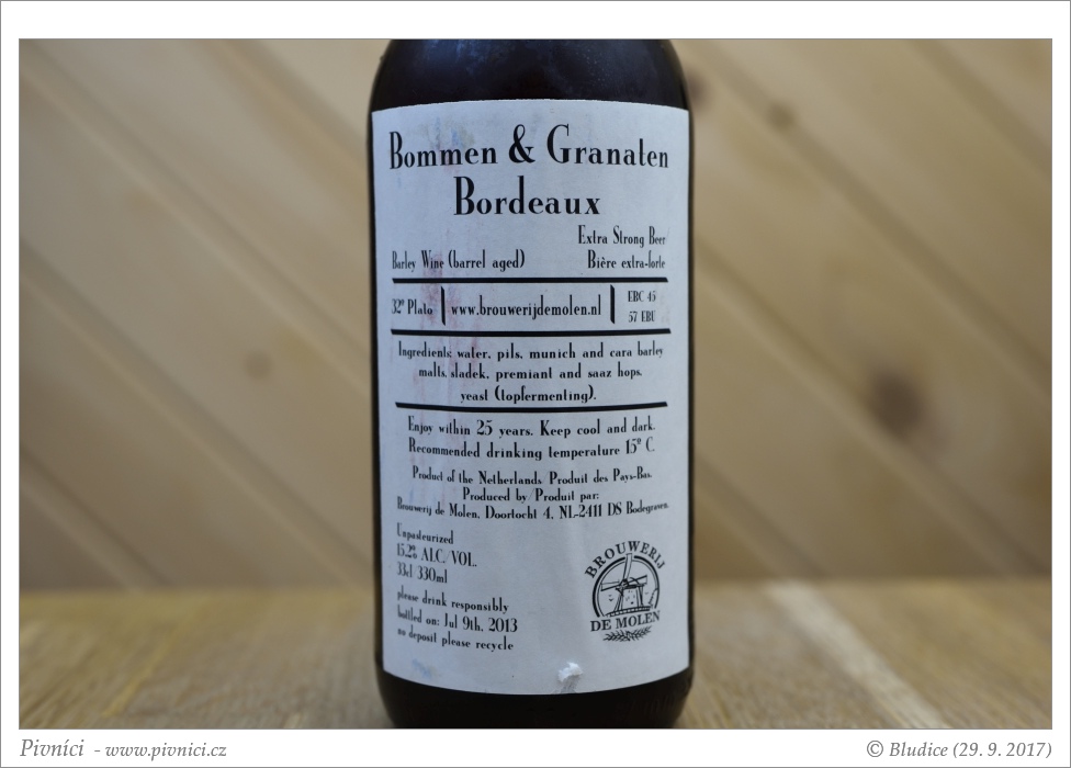 Výborné pivo dozrávané v sudech po Bordeaux. Skvěle se popíjí.Lahvováno: 9. července 2013
