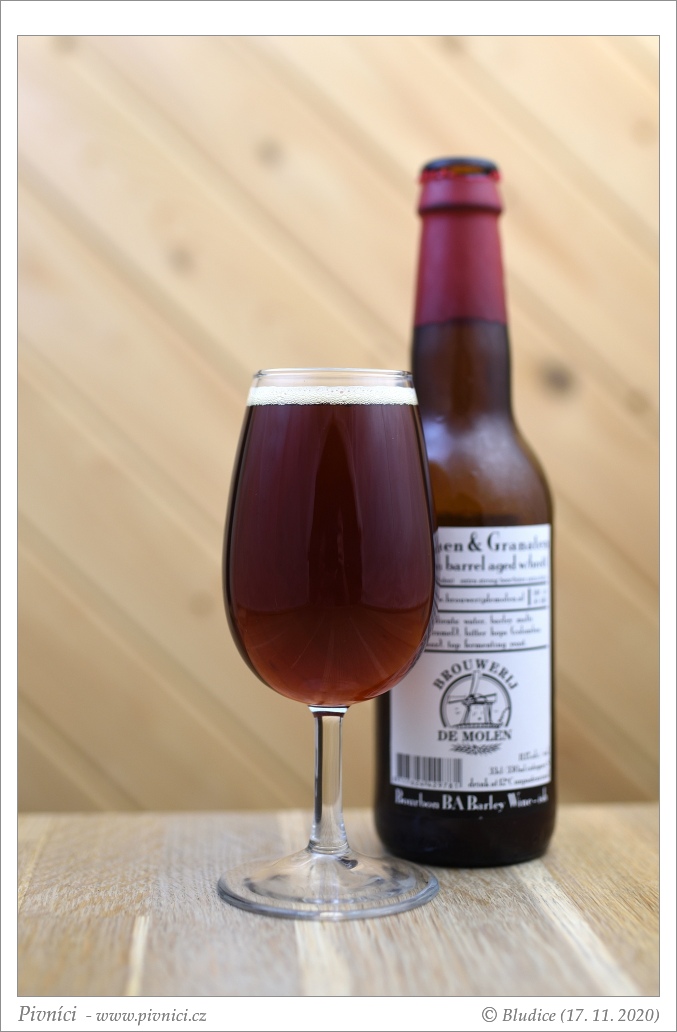 Tmavě mahagonová barva, téměř čiré. Pěkná světlá pěna, slušně drží.Vůně (4 - výborné):