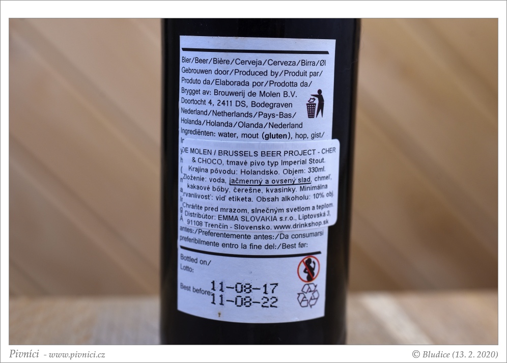 Chutný silný stout s kakaem a višněmi. Možná by mohl být trochu plnější.Lahvováno: 11. srpna 2017