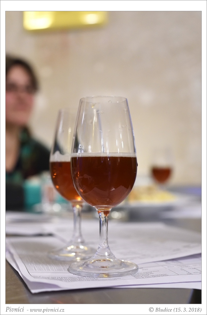 Tmavší měděná barva, prakticky čiré, pěkná světlá pěna, dobře drží.Vůně (3,5 - velmi dobré):