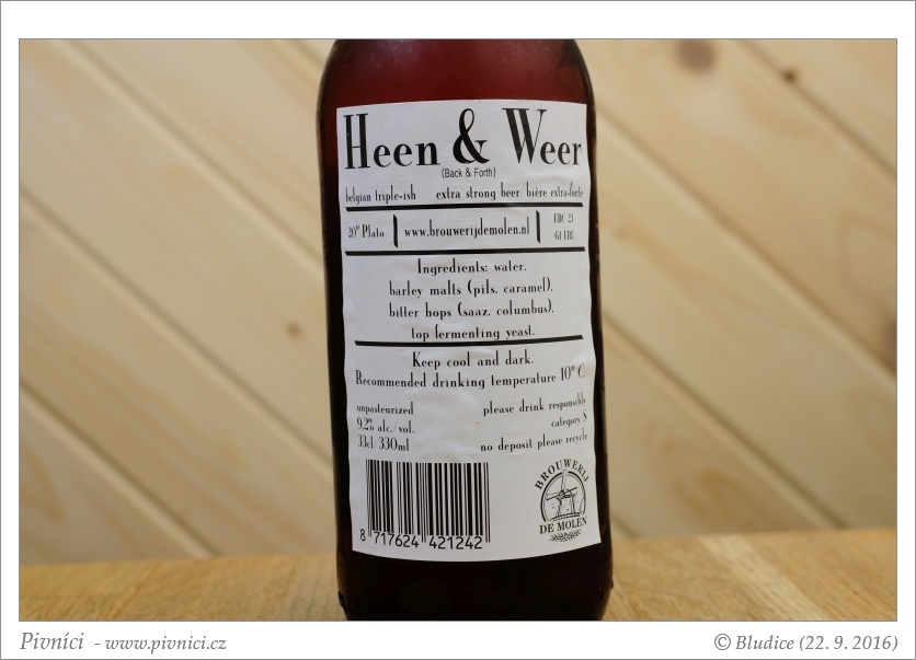 Temně zlatá barva, čiré, nižší světlá pěna, průměrně drží.Vůně (3,5 - velmi dobré):