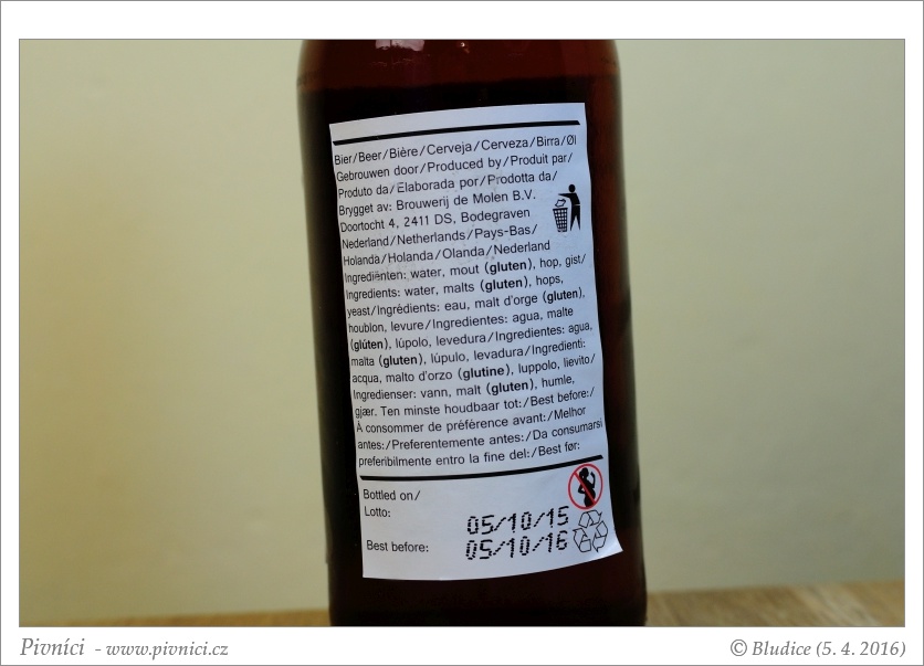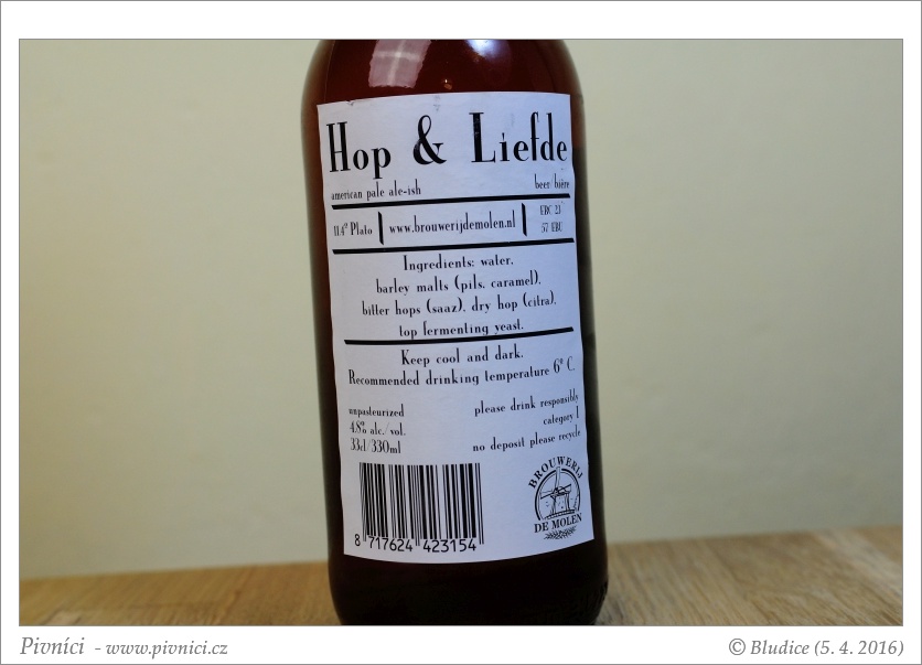 Příjemný, moc hezky chmelený, vyvážený a velmi dobře pitelný ejl.Lahvováno: 5. října 2015