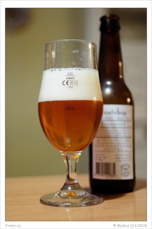 Zlatá barva, lehce zakalené, hezká bílá krémová pěna, lehce kroužkuje.Vůně (4 - výborné):