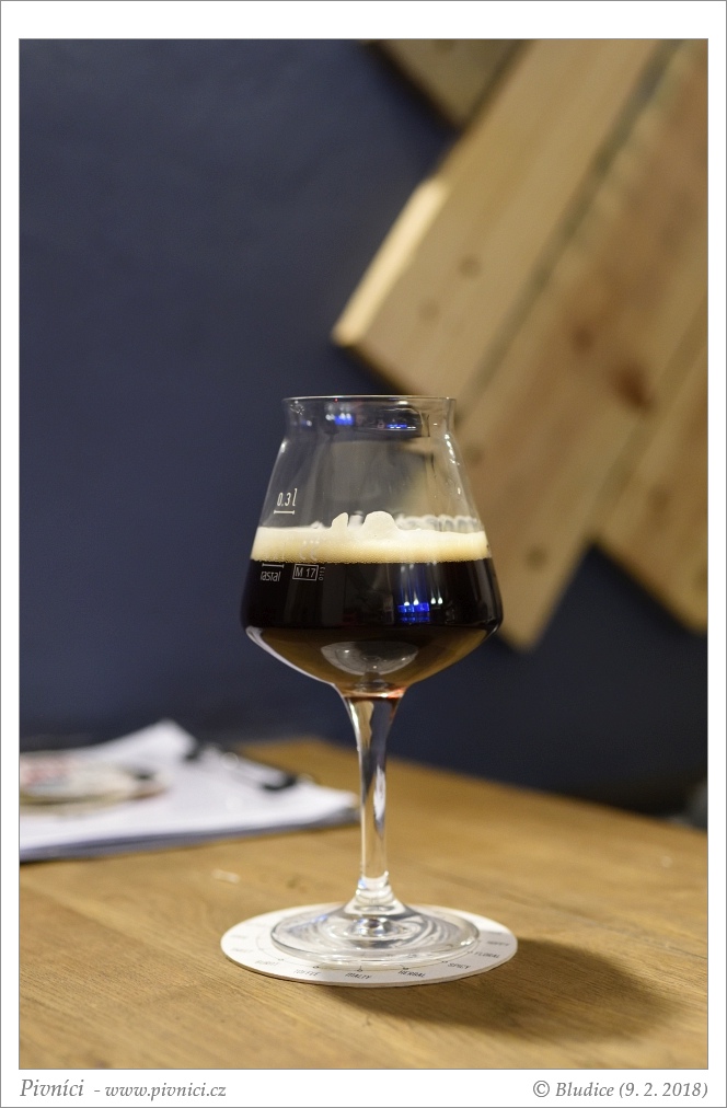 Barva velmi tmavě mahagonová. Pěkná hustá stabilní pěna.Vůně (3 - dobré):